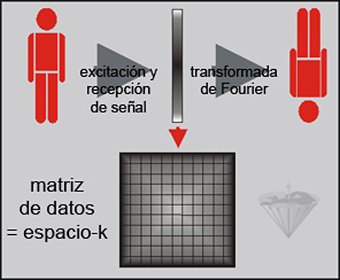 The k-space raw data matrix consists of an area to be filled with the information needed to form an MR image.