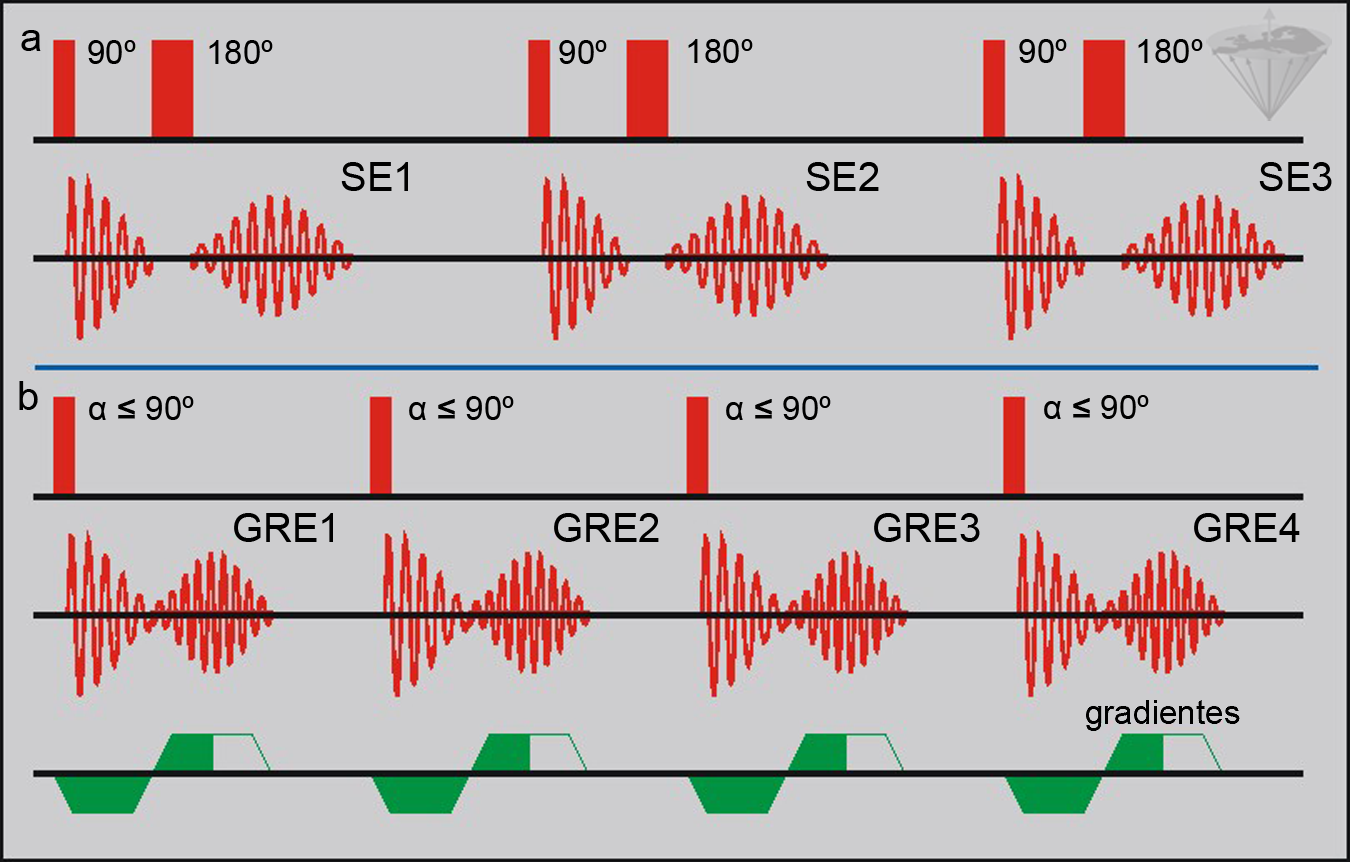 SE = spin echo; GRE = gradient (recalled) echo.