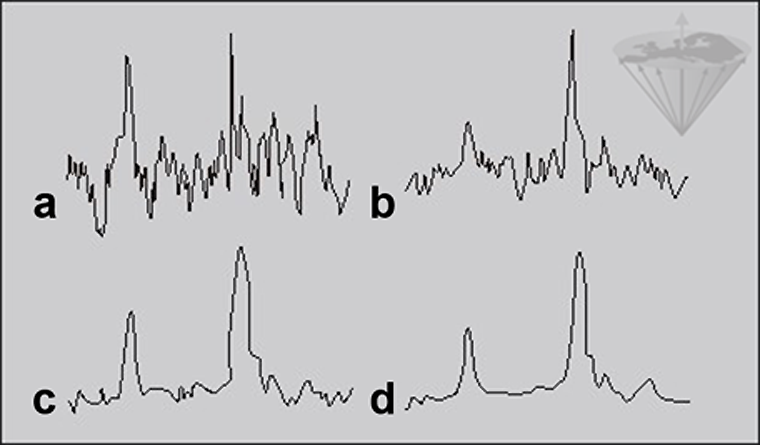 a 2; b 8; c 32; and d 128 data averages. The ‘polluting noise’ disappears slowly with higher number of averages.
