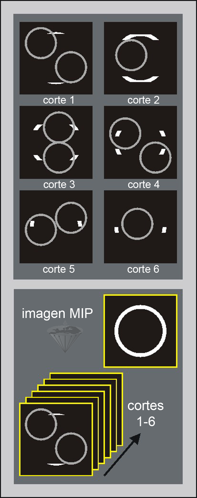 The MIP operation. In this case, six slices have been acquired.