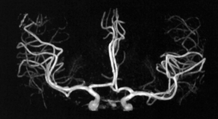 The MIP algorithm allows the selection of bright pixels in all parallel 2D slices or in the 3D slab or volume and their projection into one image. The projection method is similar to a shadowgram, with the exception that only high-signal-intensity pixels are projected into the final image. The corresponding pixels in each original image finally form the projection angiogram.