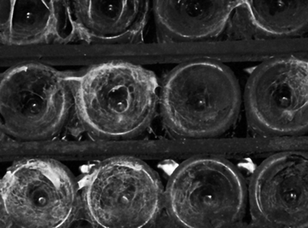 Botellas de vino viejas, cubiertas con telarañas — es muy probable que contengan un vino tinto excelente, ¿o talvez no?