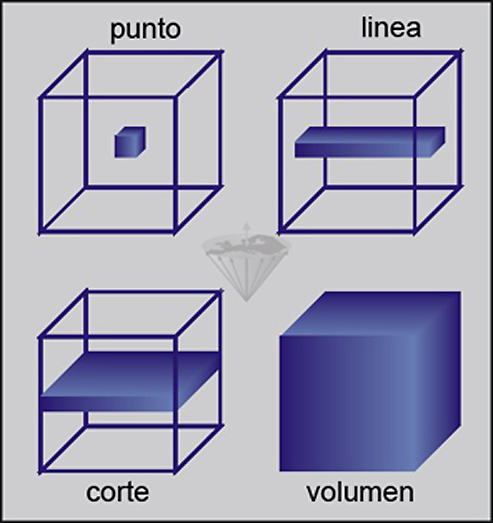 Excitation: point, line, slice, and entire volume.