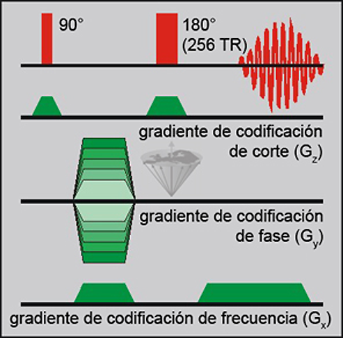 Graphic depiction of a spin-echo pulse sequence.