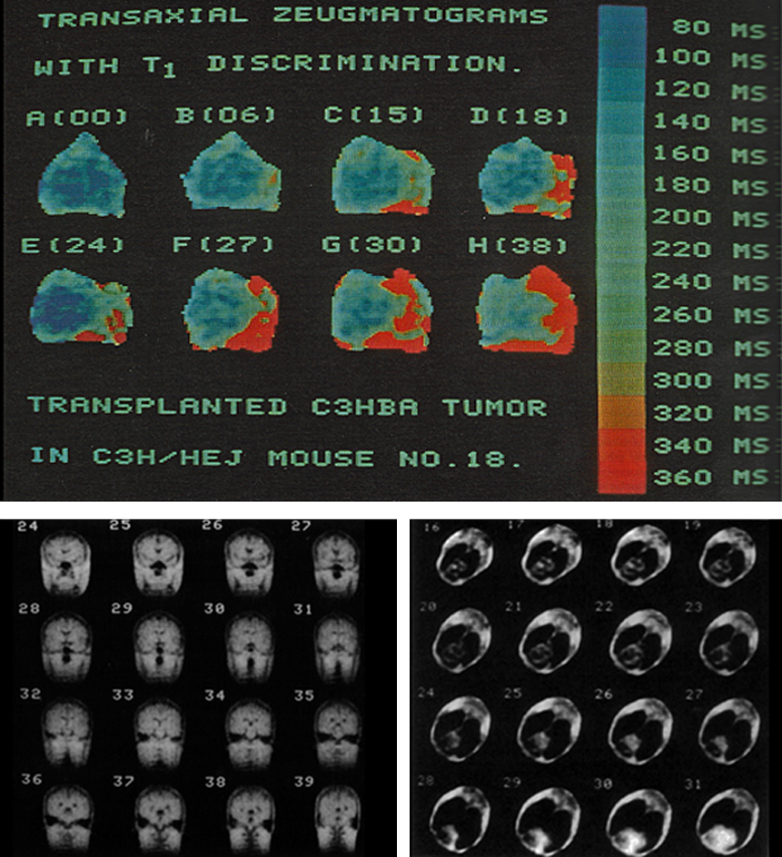 En marzo de 1973, publicó en Nature las primeras imágenes de dos tubos de agua (Figura 20-26) [⇒ Lauterbur 1973]. Más tarde el mismo año presentó la imagen de un animal vivo (una almeja) y después, en 1974, la imagen de la cavidad torácica de un ratón [⇒ Lauterbur 1974].