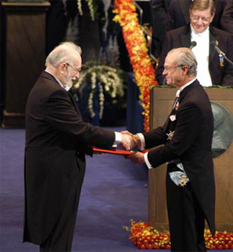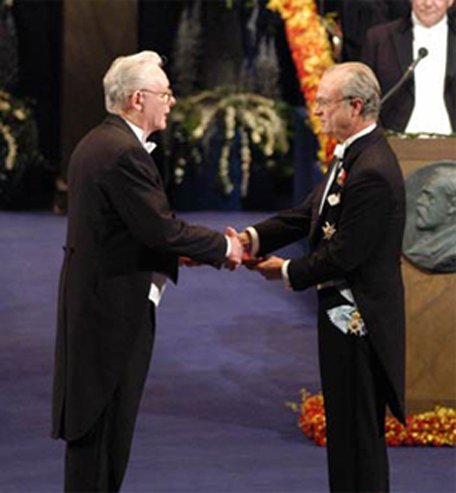 Paul C. Lauterbur recibiendo el Premio Nobel de manos del Rey de Suecia.