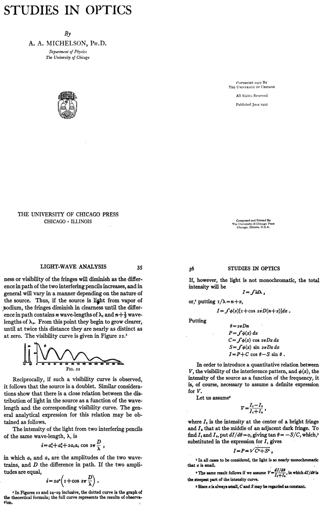 Michelson AA. Studies in Optics. University of Chicago Press. 1927. 36. [Direct Access].